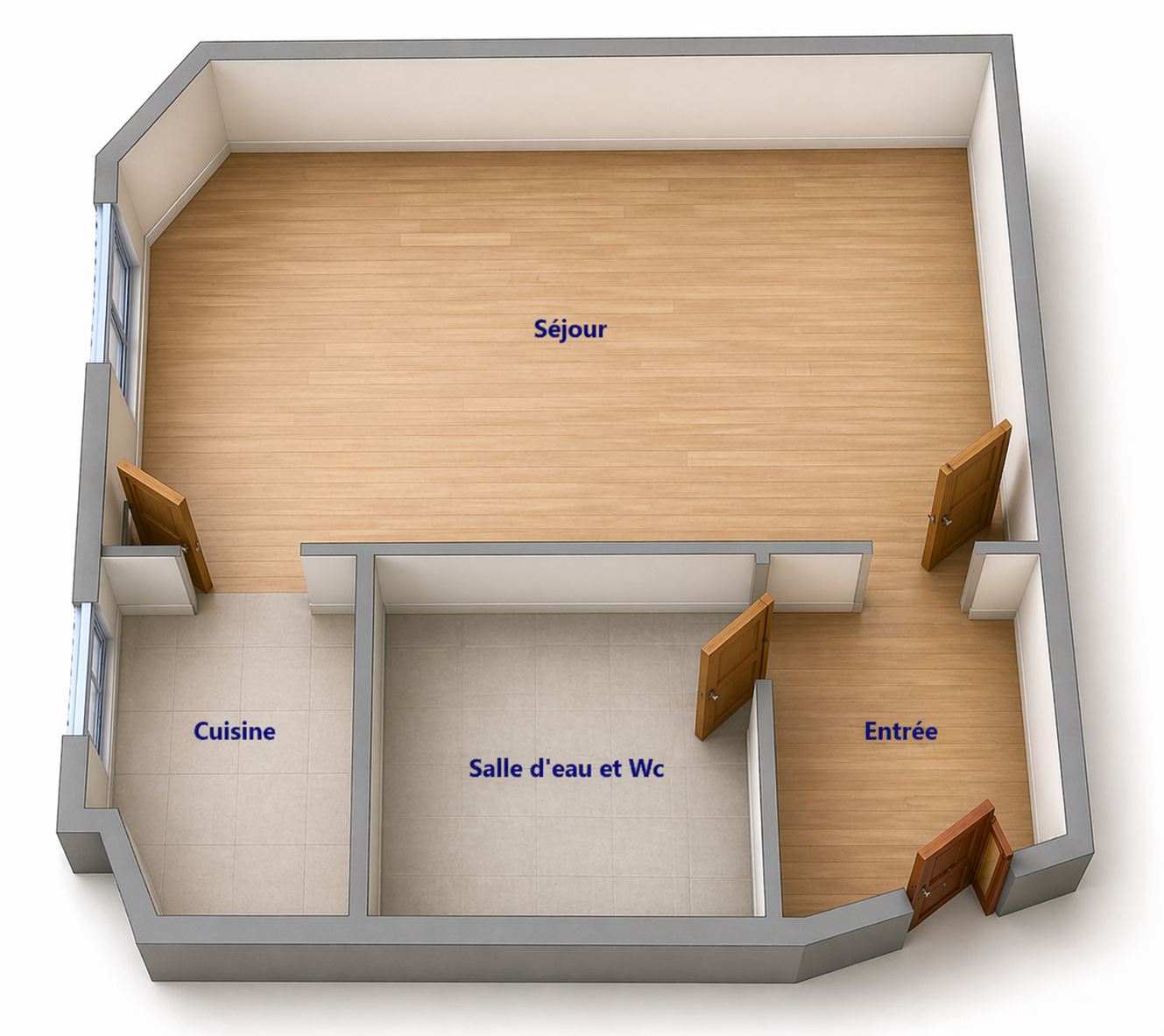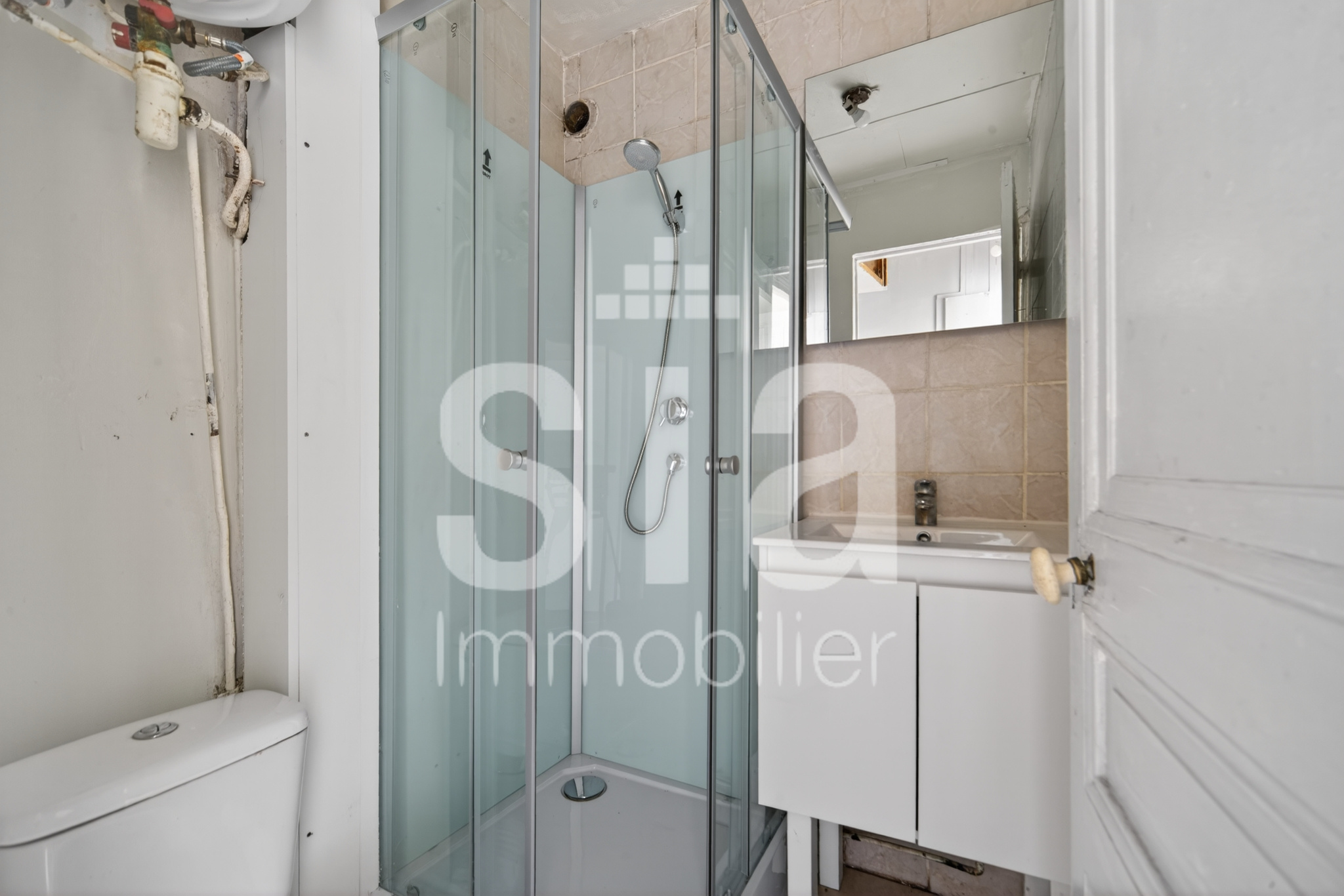 Il se compose d'une entrée qui dessert la pièce de vie ainsi que la salle d'eau équipée de toilettes.
